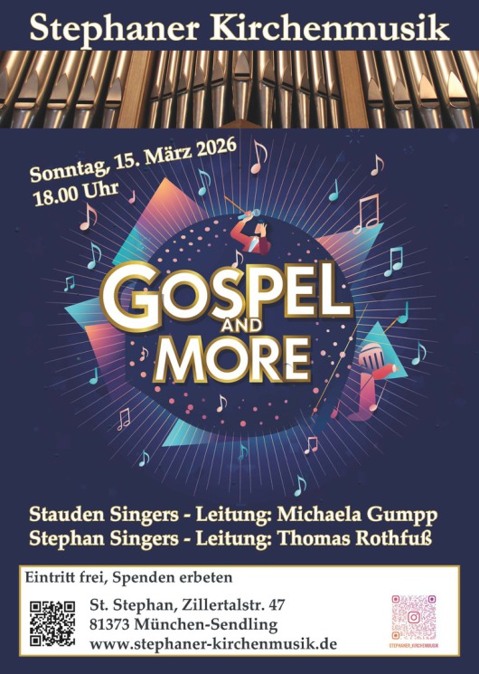 Am Sonntag, dem 15.03.26 erklingt um 18 Uhr in St. Stephan Sendling (Zillertalstr. 47) ein Konzert unter dem Titel „Gospel and More“.